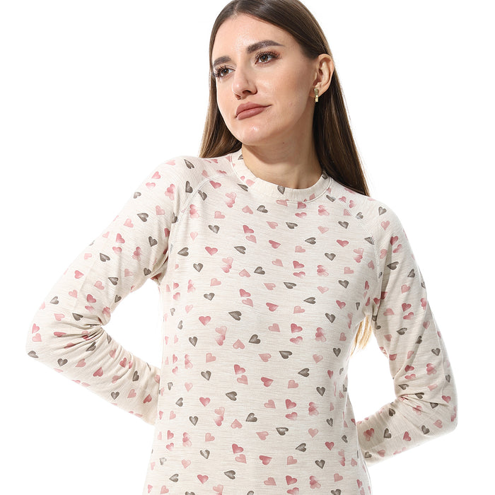 جددي إطلالتك الشتوية مع طقم ثيرمال مطبوع للنساء – باللون السيمون “Women Printed Thermal Set – Simon”، المصمم ليمنحك الدفء والراحة والأناقة في أيام البرد.